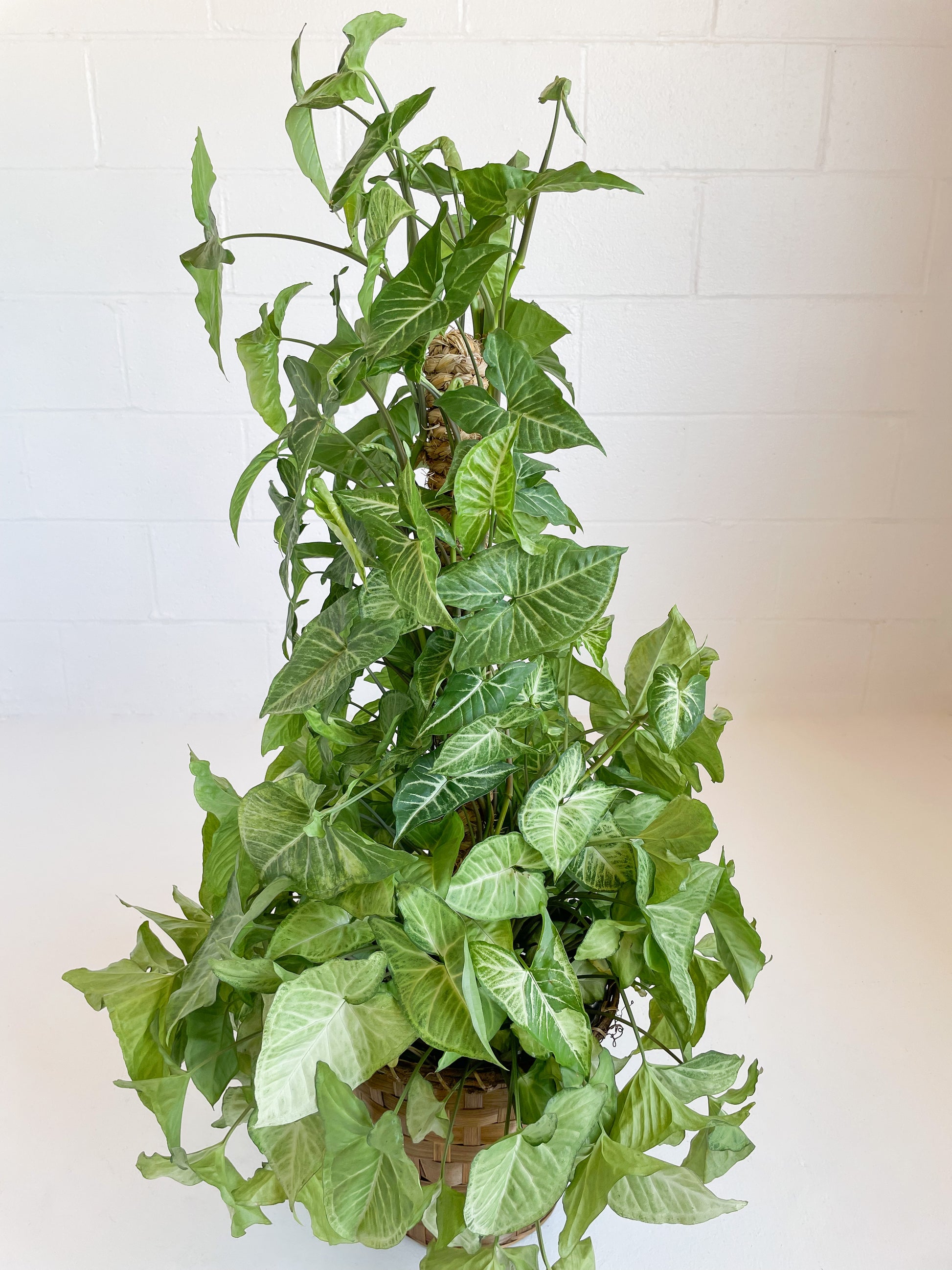 Care for an Arrowhead or Nepthytis, grow in medium, indirect lighting 6-8' from a sunny window, middle of a bright room, or in 12-14 hours of fluorescent lighting. Prefers average to warm household temperatures, 60°-70°F. Keep soil evenly moist to slightly dry.