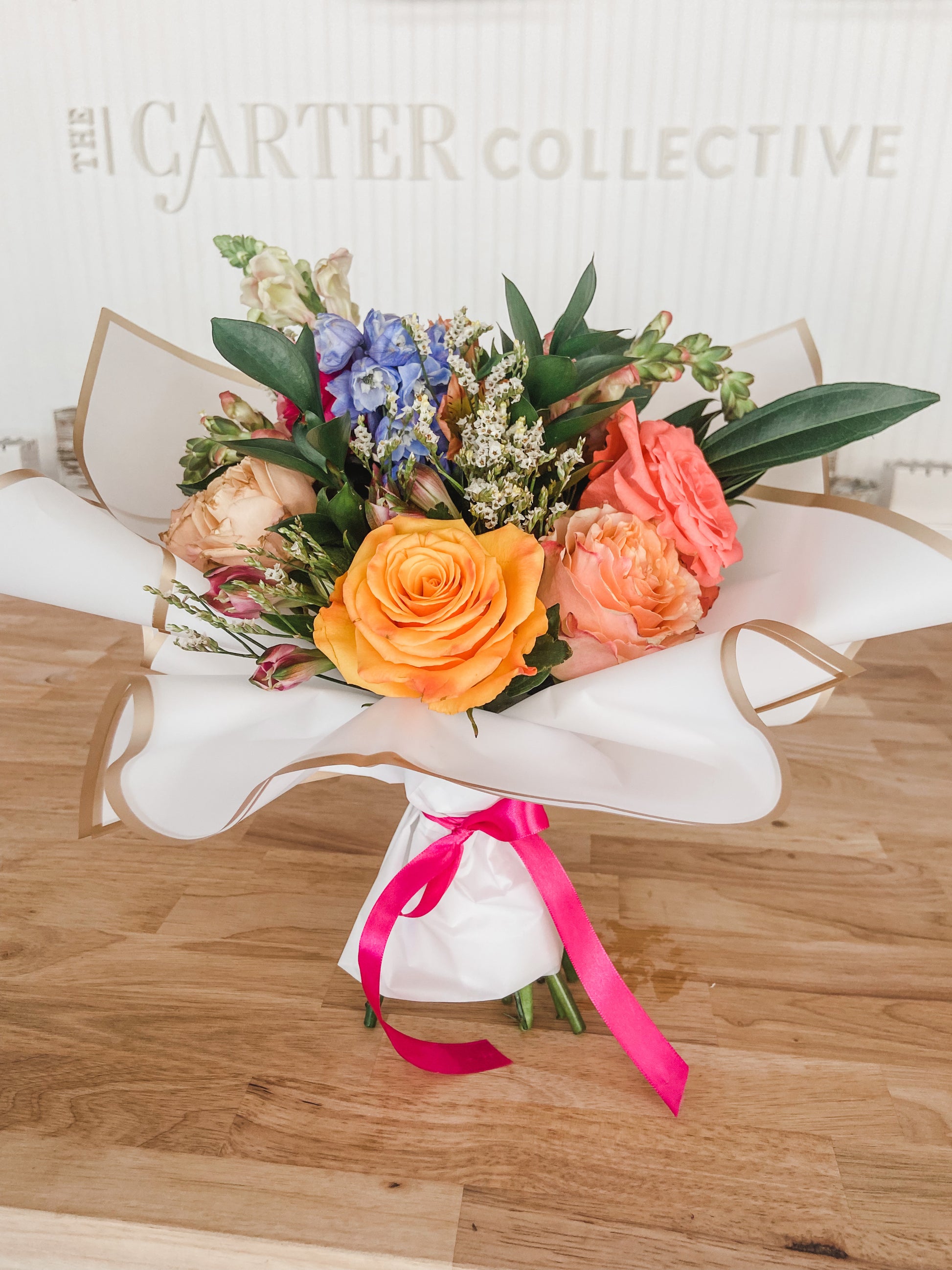 Hand tied bouquets comes as a designers choice for floral selection, in stunning Korean style paper and sweet ribbon.