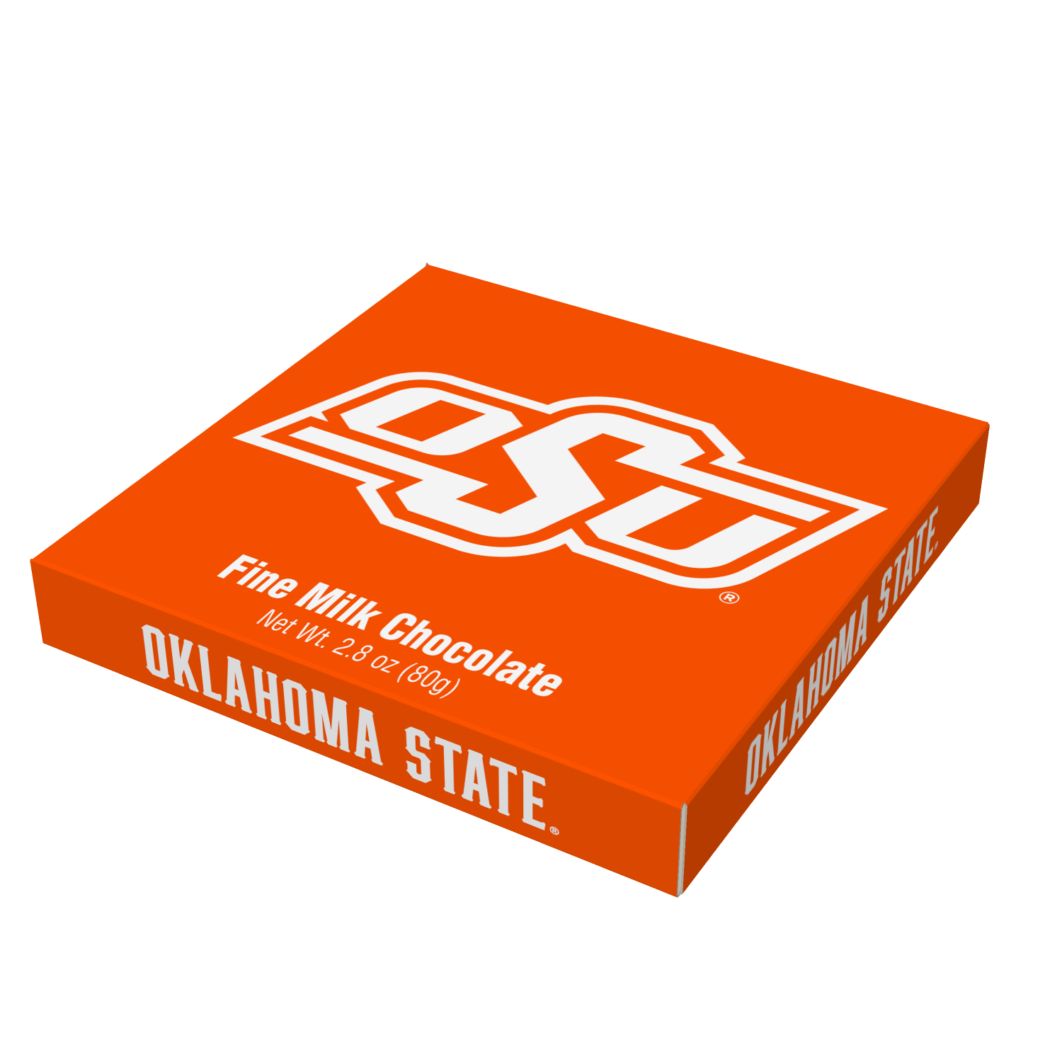 A delicious 2.8oz milk chocolate bar with the Oklahoma State University's logo engraved in the center. A perfect treat for the chocolate lover and die-hard Cowboys fan.