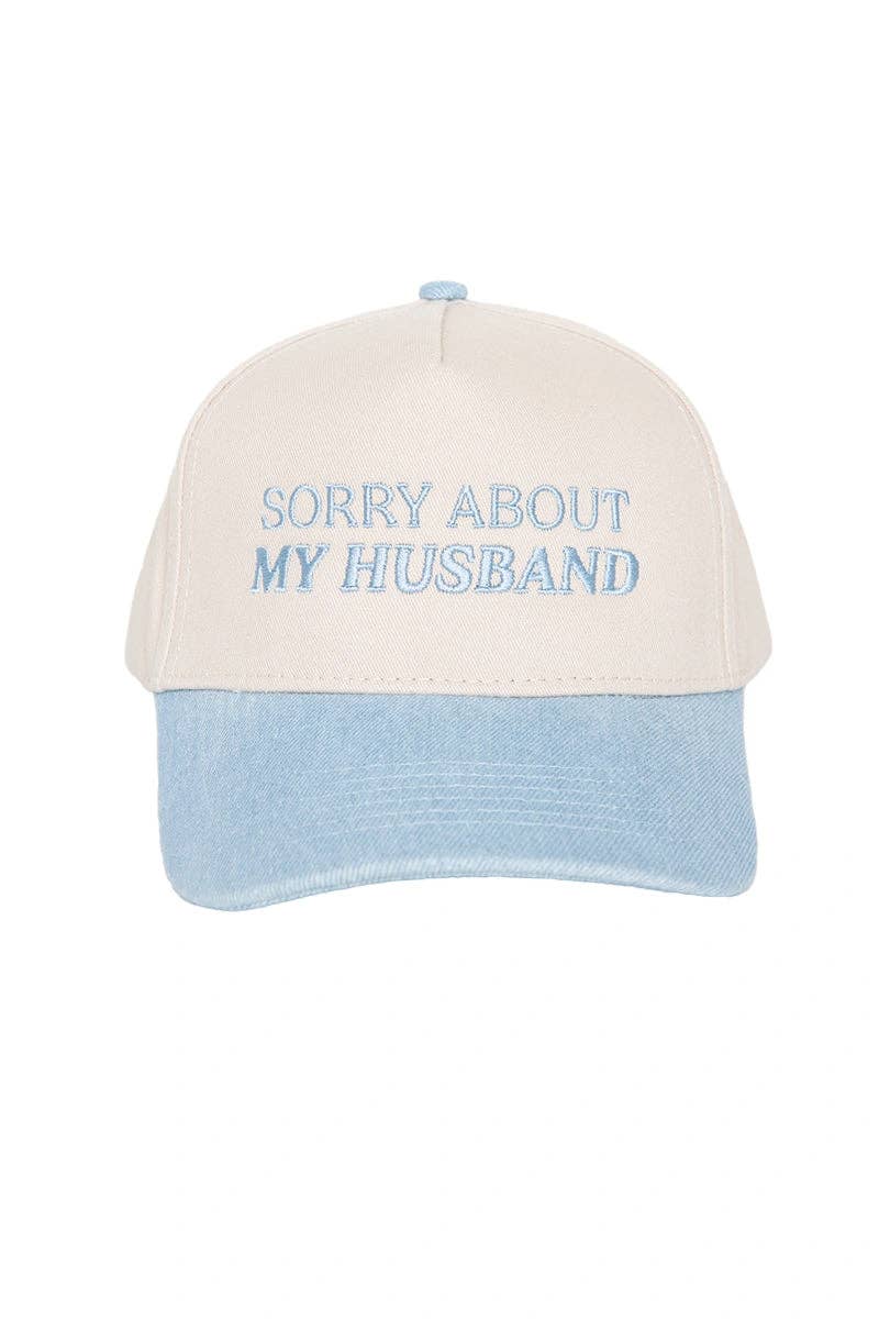 Katydid - Presale Sorry About My Husband Two-Toned Trucker Hats: Light Purple and Tan