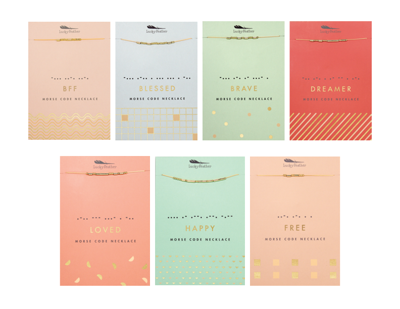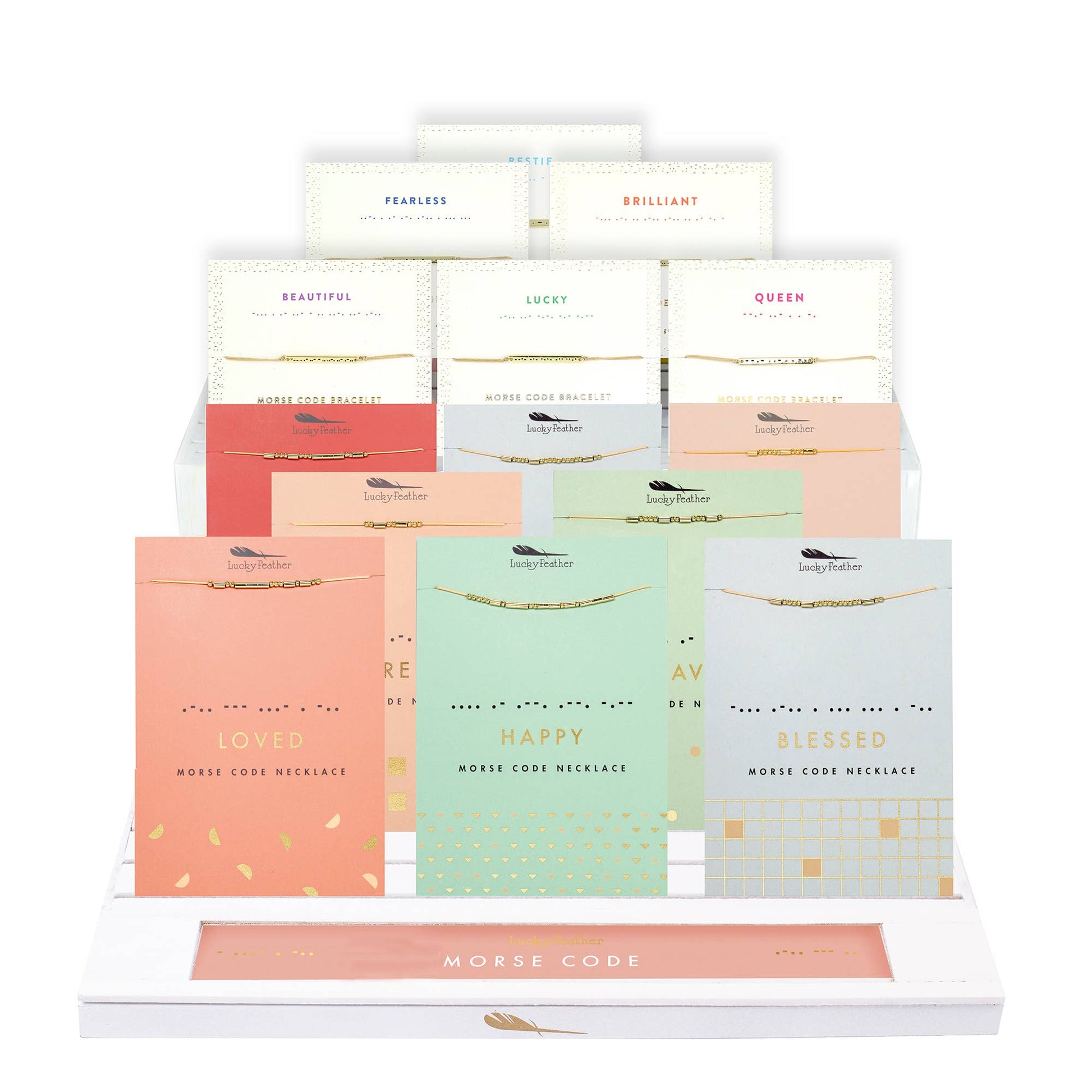 Lucky Feather - Morse Code Necklace + Bracelet BUNDLE i- 52 pc + display