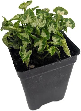 They are herbaceous plants growing from a rhizome. The leaves are evergreen, light and dark green, 15–35 cm long, and are usually arrowhead-shaped, with three lobes. The leaf shape can vary depending on the age of the plant.